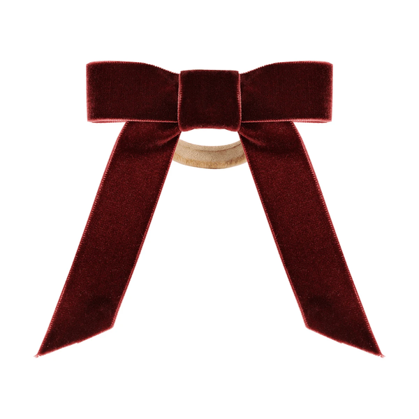 Kit composto por 2 porta guardanapos em formato de laço em tecido de veludo.