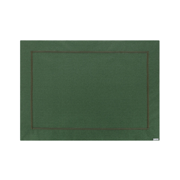 Jogo Americano da marca Mameg em tecido impermeável, repelente a líquidos. A peça possui bordado por todo o seu contorno na cor verde. Produto feito no Brasil.
