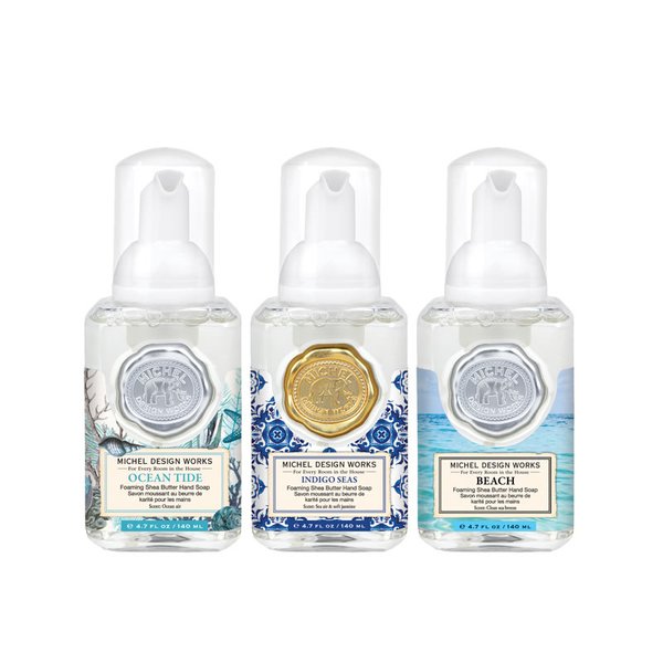 Sabonete líquido em espuma, com ótimos aromas e lindas estampas, da Michel Design Works. Contêm manteiga de karité e aloe vera para limpeza e hidratação. Uma delícia para lavar as mãos, pois sai em forma de mousse. E dura por muito tempo!