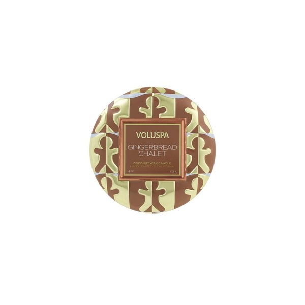 Mini vela em lata com tampa, com duração aproximada de 25h de queima, da marca Voluspa.