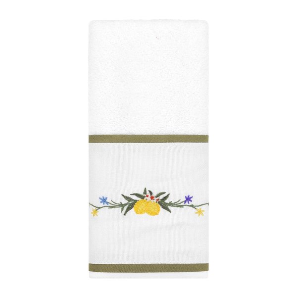 Feita com 100% algodão de alta qualidade, com aplicação de faixa de tecido em linho com bordado de limão siciliano.