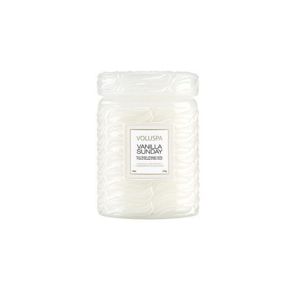 Uma mistura única de cera criada pela Voluspa utilizando um blend de ceras naturais de coco e damasco, numa linda embalagem de vidro com as estampa da linha Japonica, com tampa em vidro para manter suas velas organizadas e limpas.